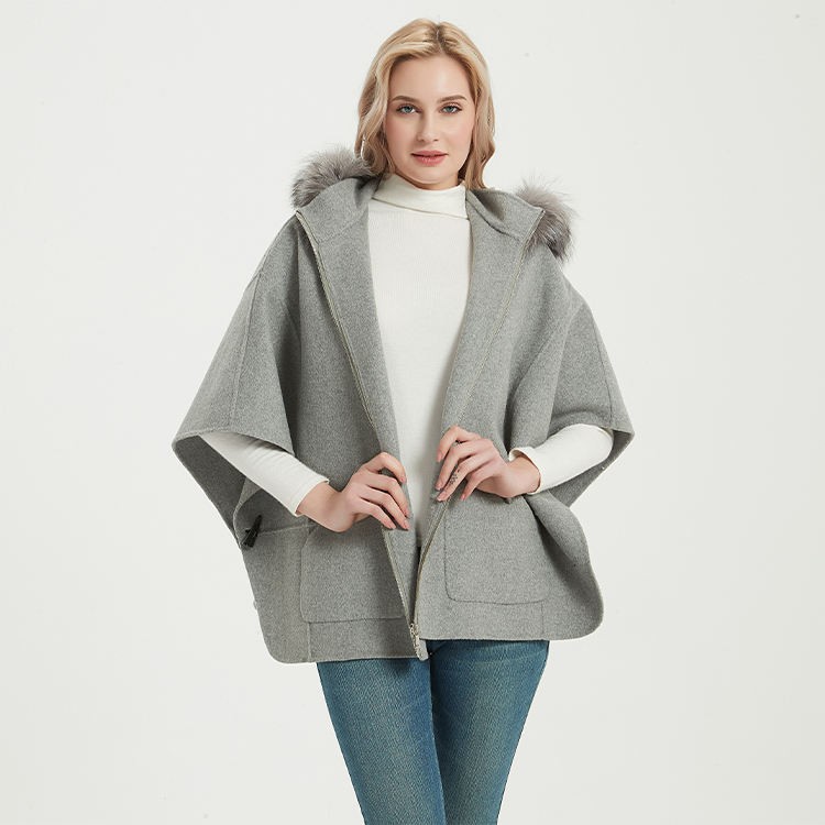 Custom Ladies Autumn And Winter Fashion Hood Fur Coats Women's Wool & Blends Fur Coat Women