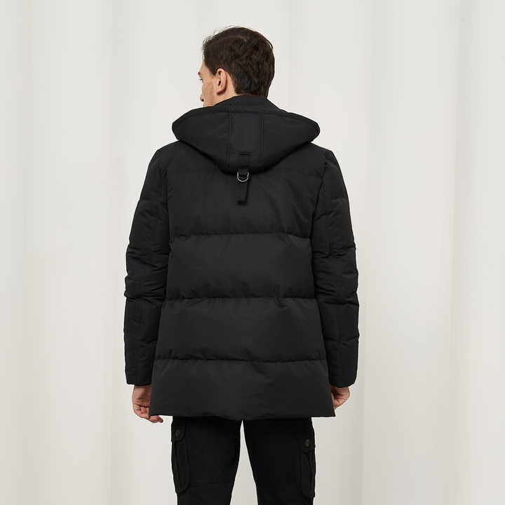 * 【SHELL/LINING FABRIC】100% Nylon outshell; Filling: 90% duckdown, 10% duckfeather, comfortable and warm-keeping. High quality warm winter coats for men. * 【WATER RESISTENT AND WINDPROOF FABRIC】 3000mm water resistent rating keeps you warm and protects you from even the coldest and wettest weather. This jacket is rated for temperatures down to -25℃. It features a durable, water resistent fabric, keeping you dry in the rain or snow. It helps you stay dry outdoors and have fun all day. * 【HIGH QUALITY DUCK DOWN】800+ fill power 90% duck down hold our temperature, lighter and warmer. This is the perfect jacket for those frigid days when you require maximum protection. * 【MULTIFUNCTIONAL DESIGN AND FASHIONABLE STYLE】This down jacket is sure to keep you warm with fashion style and classic hooded design. Two big flap pockets keep your hands warm and storm cuffs that seal out cold. Two inside pockets for putting important things which are convenient for your daily use. The fluorescent cloud color of the chest pockets and flap pockets is high visible in the sun, and the reflective part makes the jacket visible at night.