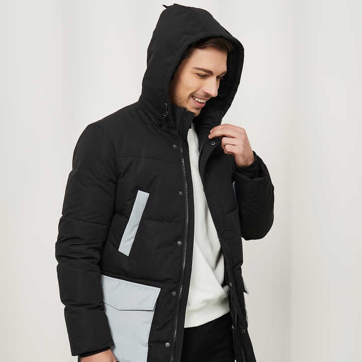 * 【SHELL/LINING FABRIC】100% Nylon outshell; Filling: 90% duckdown, 10% duckfeather, comfortable and warm-keeping. High quality warm winter coats for men. * 【WATER RESISTENT AND WINDPROOF FABRIC】 3000mm water resistent rating keeps you warm and protects you from even the coldest and wettest weather. This jacket is rated for temperatures down to -25℃. It features a durable, water resistent fabric, keeping you dry in the rain or snow. It helps you stay dry outdoors and have fun all day. * 【HIGH QUALITY DUCK DOWN】800+ fill power 90% duck down hold our temperature, lighter and warmer. This is the perfect jacket for those frigid days when you require maximum protection. * 【MULTIFUNCTIONAL DESIGN AND FASHIONABLE STYLE】This down jacket is sure to keep you warm with fashion style and classic hooded design. Two big flap pockets keep your hands warm and storm cuffs that seal out cold. Two inside pockets for putting important things which are convenient for your daily use. The fluorescent cloud color of the chest pockets and flap pockets is high visible in the sun, and the reflective part makes the jacket visible at night.