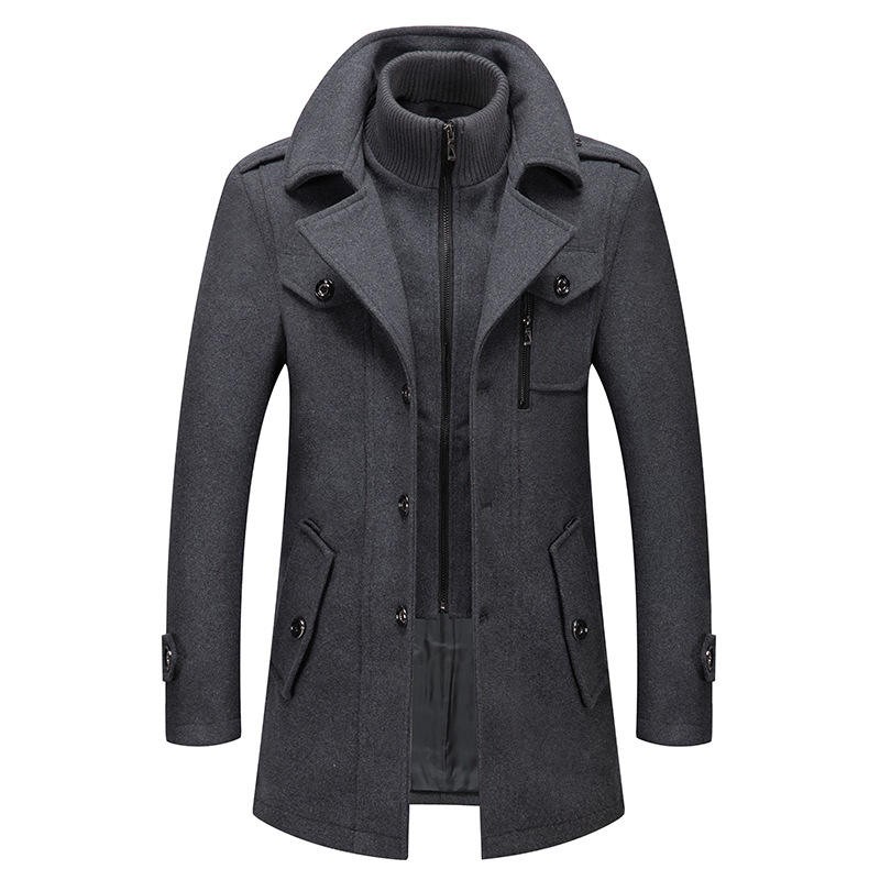 New Autumn Winter High Quality Solid Color Men's Wool-blended Overcoat Long Casual Double Collar Warm Coat For Men